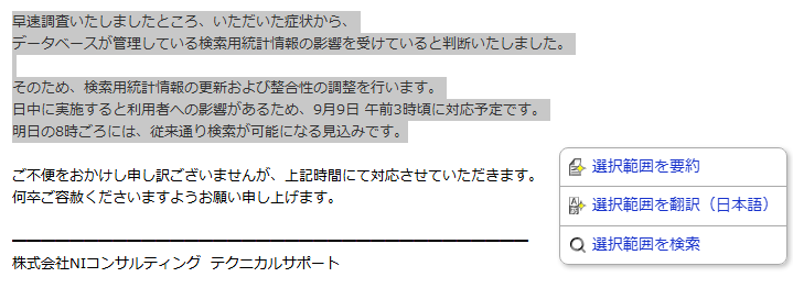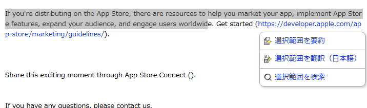 - 選択メニューから 「選択範囲を翻訳」をクリックします。