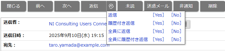 - Yes:返答が必要と判断された場合、承諾や同意の内容を含む文章を自動で作成します。
