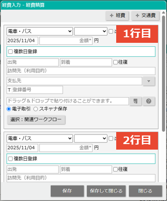 | 経費入力初期行数 | 経費入力時の初期表示行数を指定します。![]() |