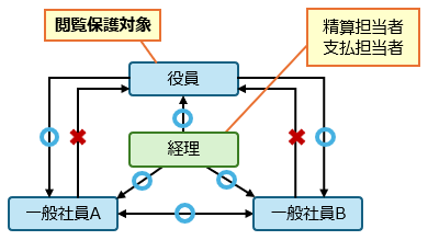 ・社員Aが「秘書課」のときに申請した経費申請・仮払申請は閲覧保護対象になります。 - 兼任部署や兼任役職、親部署は加味されません。