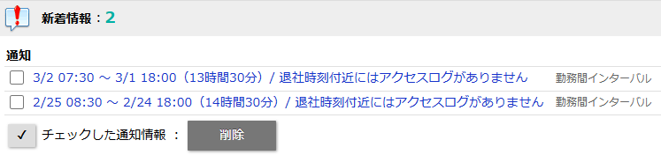 • 退社時刻付近で操作やアクセスログが十分に確認できない場合、「退社時刻付近にはアクセスログがありません」と表示されます。