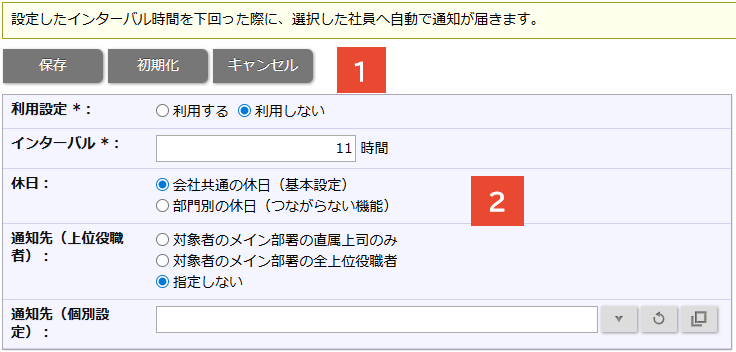 3. リンク「勤務間インターバル」をクリックし、設定画面を表示します。