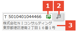 - 存在する登録番号が入力された場合、入力欄の下に国税庁が公表している名称・住所が表示されます。(③)