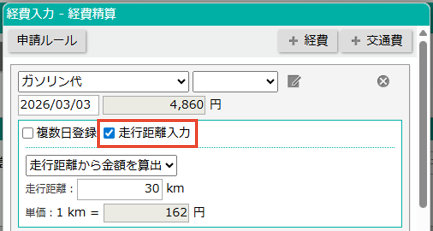 - 「走行距離から金額を算出」を選択した場合は、走行距離を入力してください。