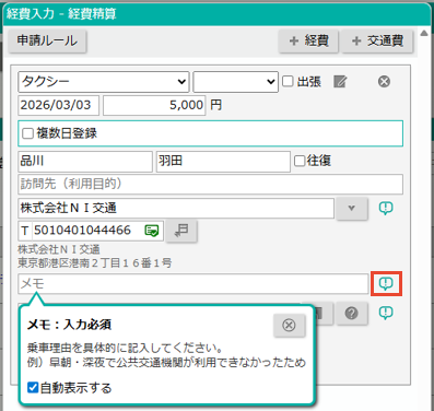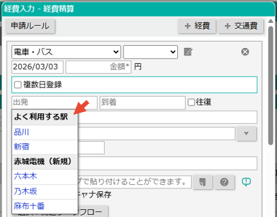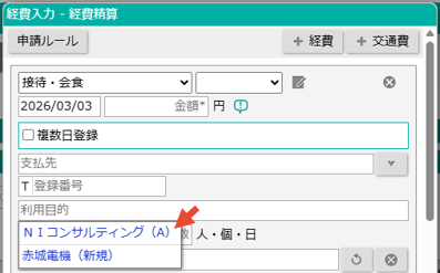 - 本機能は、経費申請画面から開く新規登録の経費入力ダイアログでのみ利用できます。