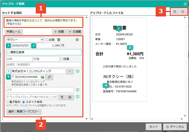 内容を確認して「セット」ボタンをクリックすると、経費として登録されます。