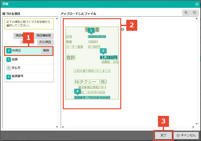 - 解析結果から値がセットされた項目の場合、番号に色が付きます。