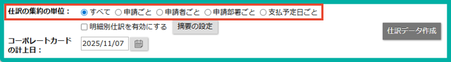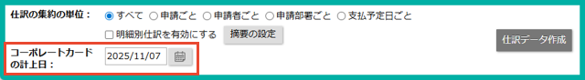 コーポレートカードで支払った経費の仕訳計上日を指定できます。