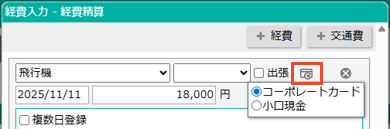 - 経費入力ダイアログで「コーポレートカード」を指定した経費