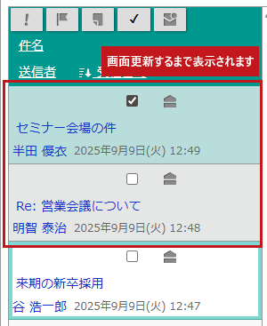 | メールにチェックマークをつけます。 | |