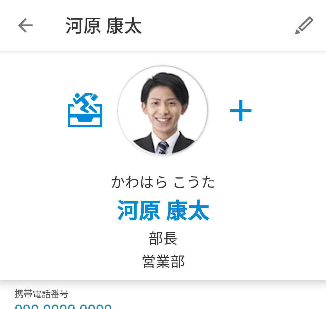 タップすると当該プロフィールと連携しているSFAのパーソン情報の親にあたる顧客情報をブラウザで開きます。 - +アイコン(プロフィール写真右のアイコン)