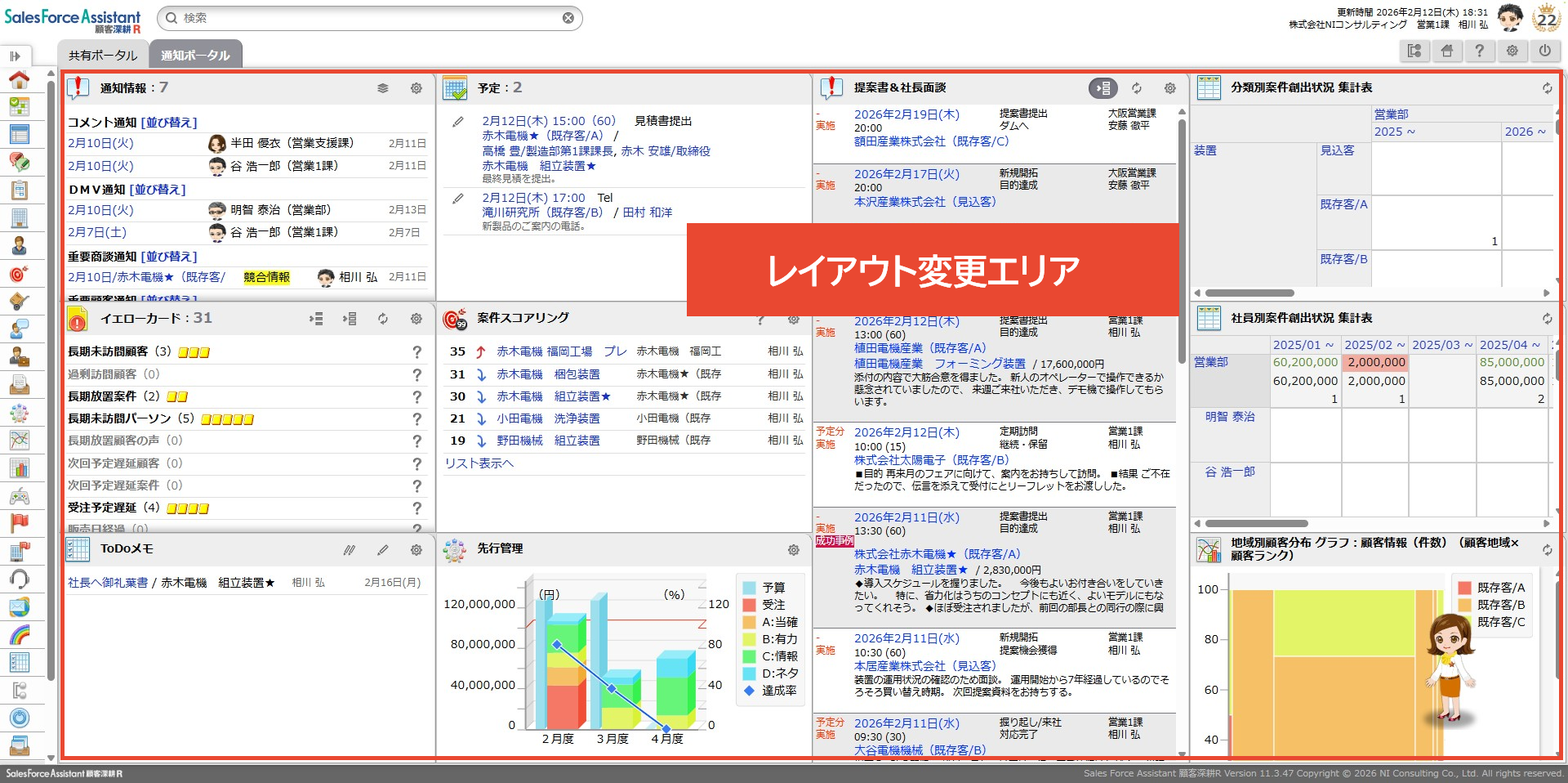 ⇒「ポータル/レイアウト > 編集画面」が表示されます。 - 必要項目を入力、ポータルパーツを配置します。