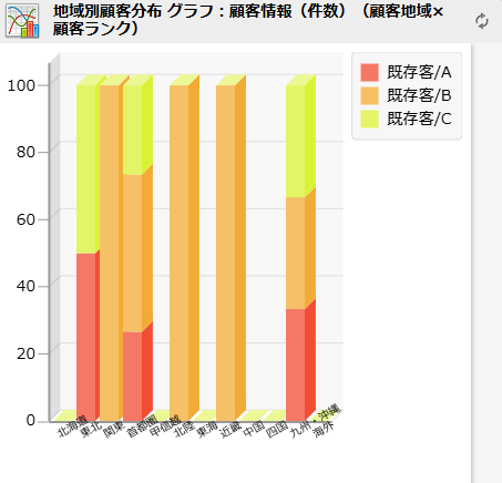 | 4 | ランキングに表示された顧客に対して、一括処理を行うことができます。 [対応済み]:内容を確認し、ランキング一覧から表示を消す操作を行います。 [担当者変更]:表示時点での担当者が退職者でメンテナンスしたい場合などに、担当者を一括で変更できます。 [ランキング対象から外す]:メッシュランキングの集計対象から外す操作を行います。 |