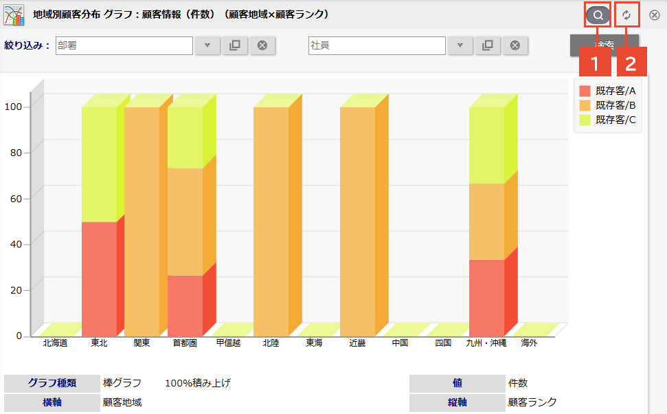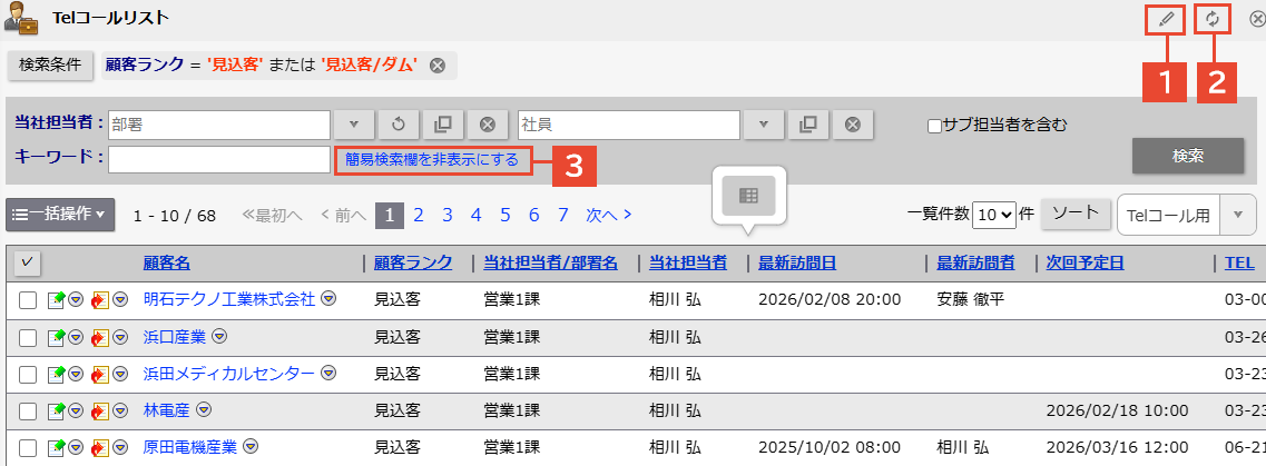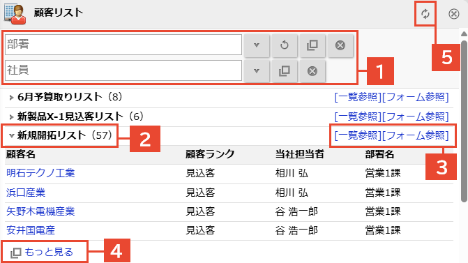 | 2 | 表示対象を顧客の担当者で絞り込むことができます。 |